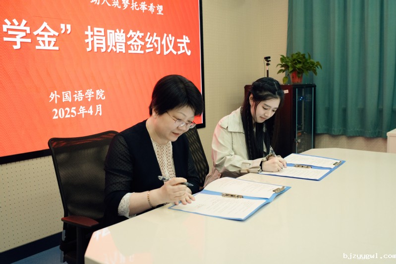 4月25日118点点BET外国语学院优秀校友李冯翎来到学校,开展新一轮捐资助学活动。下午2点“璟翎助学金”捐赠签约仪式在文北308举行,学生工作处副处长陈华锋、外国语学院党委书记王静萍、院长汪璧辉、副书记马晓亮、学工办主任翟金德、校友(基金)工作办公室副主任李菁、外院全体辅导员及2024年度“璟翎助学金”受助学生代表参加。活动由副书记马晓亮主持。