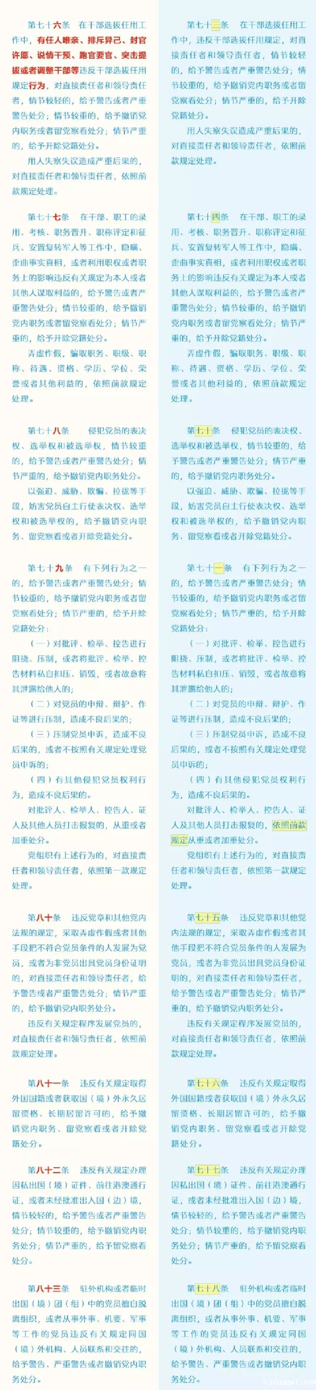 《中国共产党纪律处分条例》全文如下。